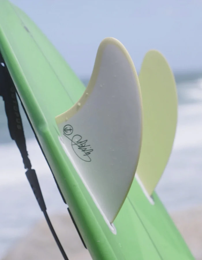 The Mikey Feb Keel set was created with a balanced approach to trimming in mind. It has a wider base and lightly swept outline that creates hold, drive and makes for fast, smooth arcs on an open face. Add in Mikey’s signature colorway, and you have the perfect set for ripping on your retro twin.